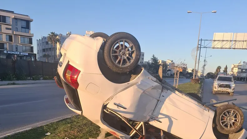 Polis Basın Subaylığı’ndan yapılan açıklamaya göre, saat 05:30 sıralarında, FV 290 plakalı salon aracı, Gönyeli Çemberinden Güzelyurt istikametine doğru dikkatsiz bir şekilde kullanan Ahmed Altayeb Alı İdris (E-21), yol üzerinde sağda bulunan Artesa Binaları önlerine geldiğinde direksiyon hakimiyetini kaybedip, yolun sağından çıktı ve orta refüj üzerindeki aydınlatma direğine çarptıktan sonra takla atıp tavanı üzerinde durdu.