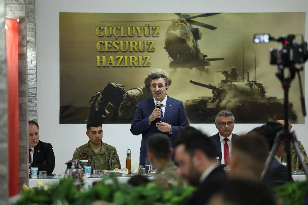 Cumhurbaşkanı Yardımcısı Cevdet Yılmaz, Kuzey Kıbrıs Türk Cumhuriyeti'nde (KKTC) Lefkoşa Eşref Bitlis Kışlası'nda düzenlenen iftar programında Mehmetçik ile bir araya geldi.